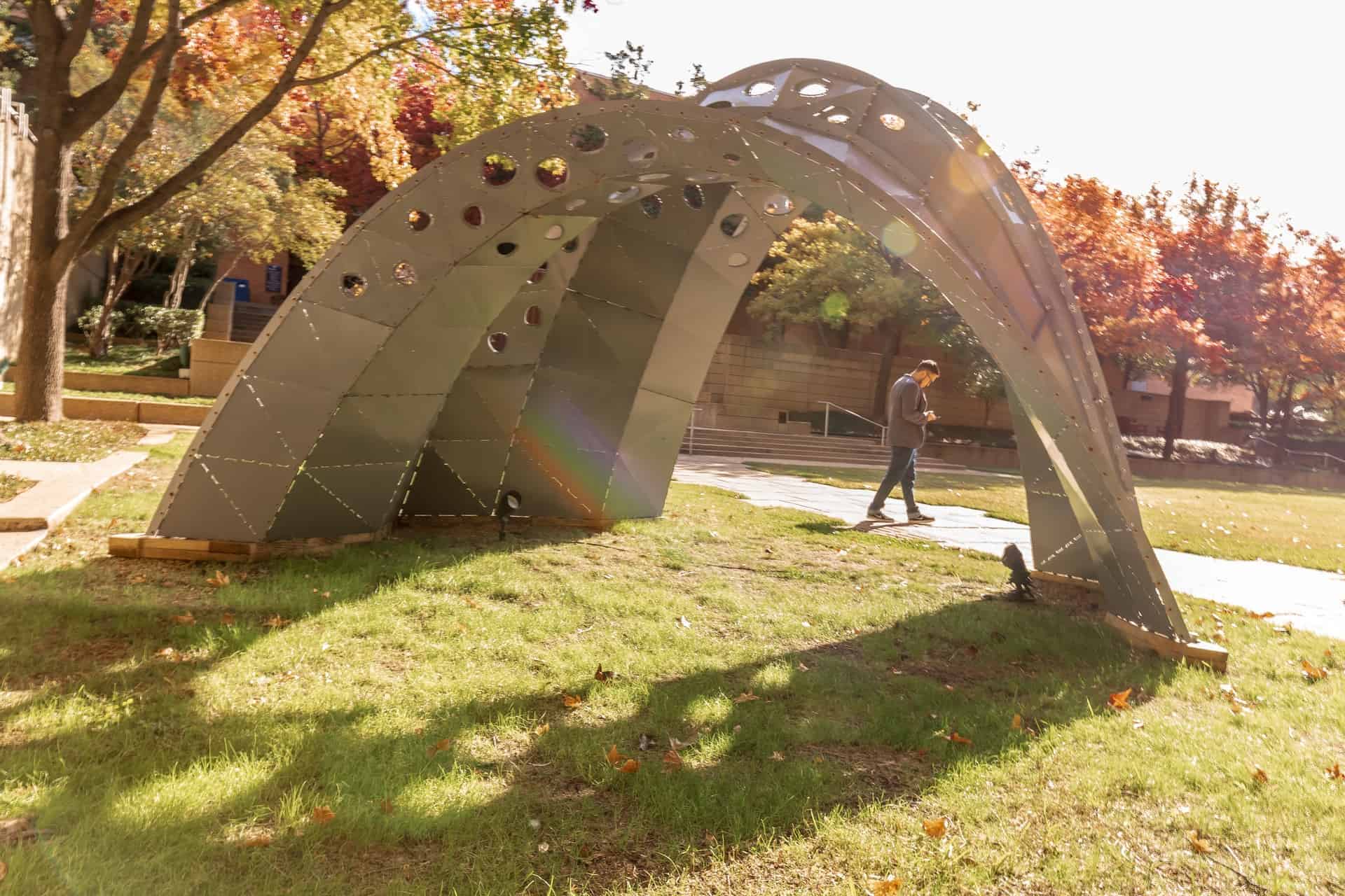 In the CAPPA (College of Architecture, Planning, and Public Affairs) Courtyard on the West Campus of the University of Texas at Arlington.