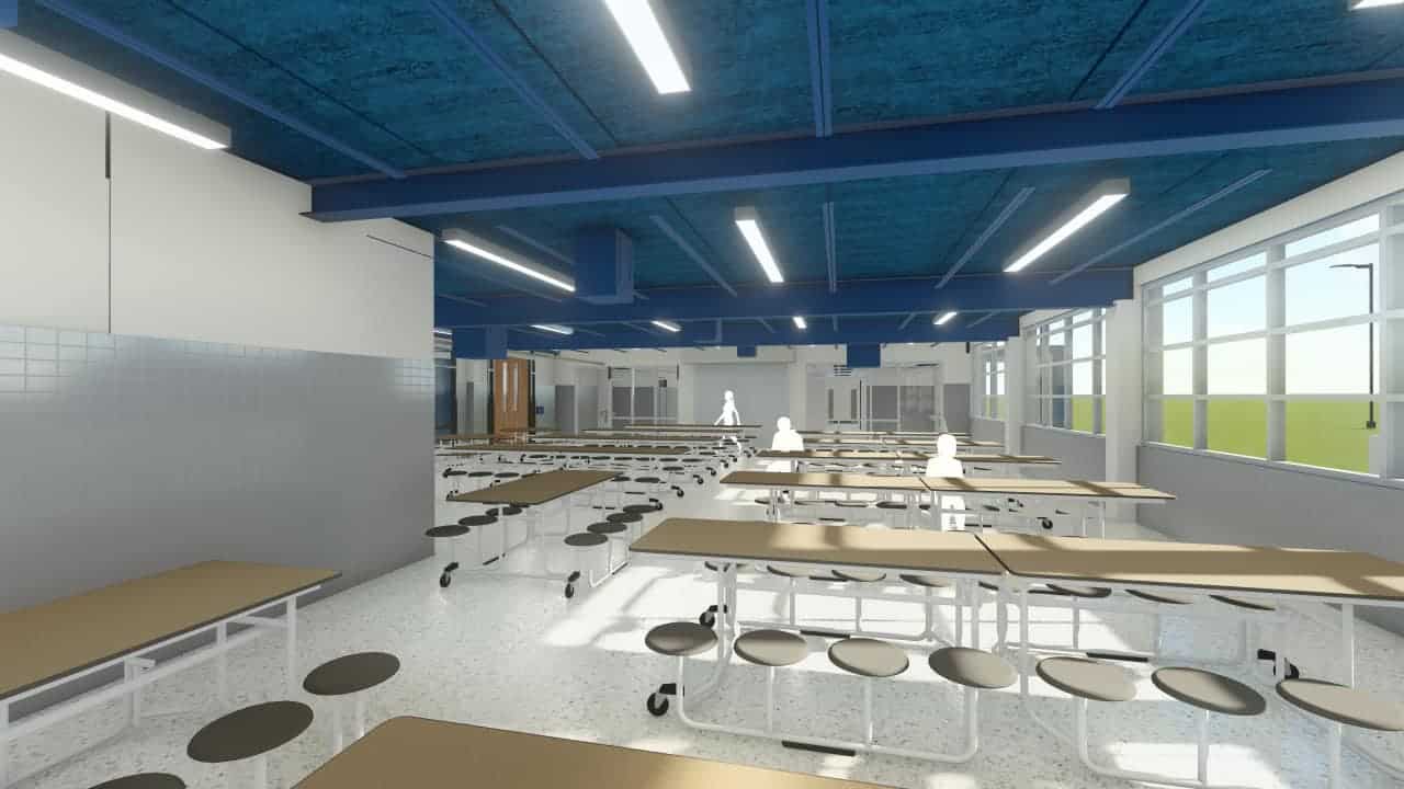 During the community meeting, the kitchen manager was very pleased to learn the new layout will be designed to accommodate solely the kitchen equipment. The additional square footage in the existing cafeteria will be a reenergized space that will offer increased daylighting and vibrant school colors, putting life back into the space.